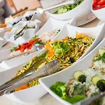 Park Hotel Perla w Złotych Piaskach oferuje codzienne śniadanie w formie bufetu w godzinach 07:00 do 10:00. Bar lobby ma bilard i telewizję wraz z gamą lekkich drinków. Goście mogą spróbować potrawy kuchni wschodnioeuropejskiej w restauracji Ivan's Place, położonej w niewielkiej odległości od tego uroczego hotelu.